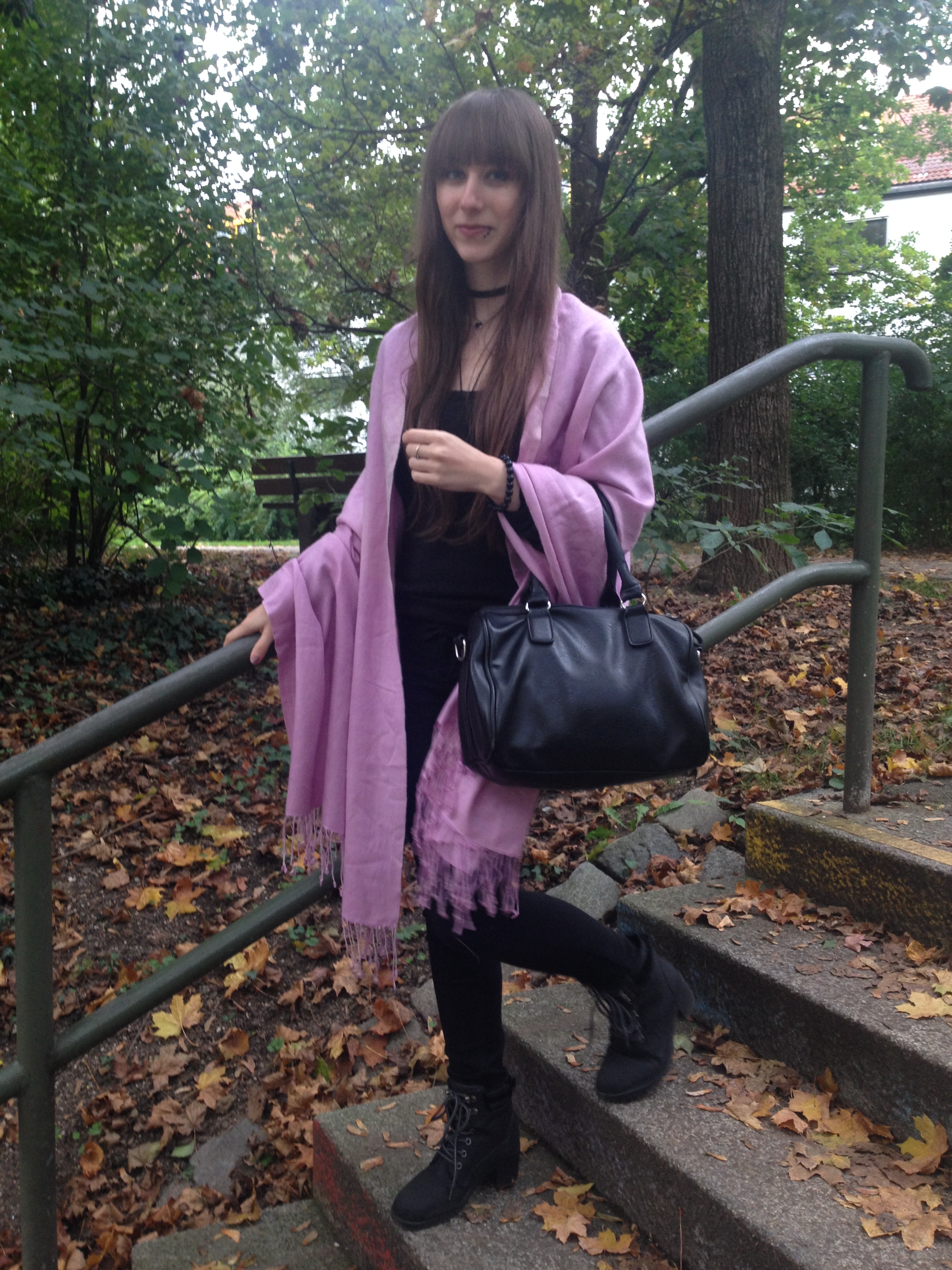 Hier habe ich etwas getrickst, weil ich unbedingt einen Poncho in dieser Farbe haben wollte. Deshalb habe ich einfach ein sehr großes Tuch bzw. einen sehr großen Schal genommen und ihn mir wie einen Poncho übergeworfen. Das klappt nicht mit jedem Tuch, da dieses aber so groß ist, geht das super. Durch die Fransen sieht es auch noch mal mehr nach Poncho aus.