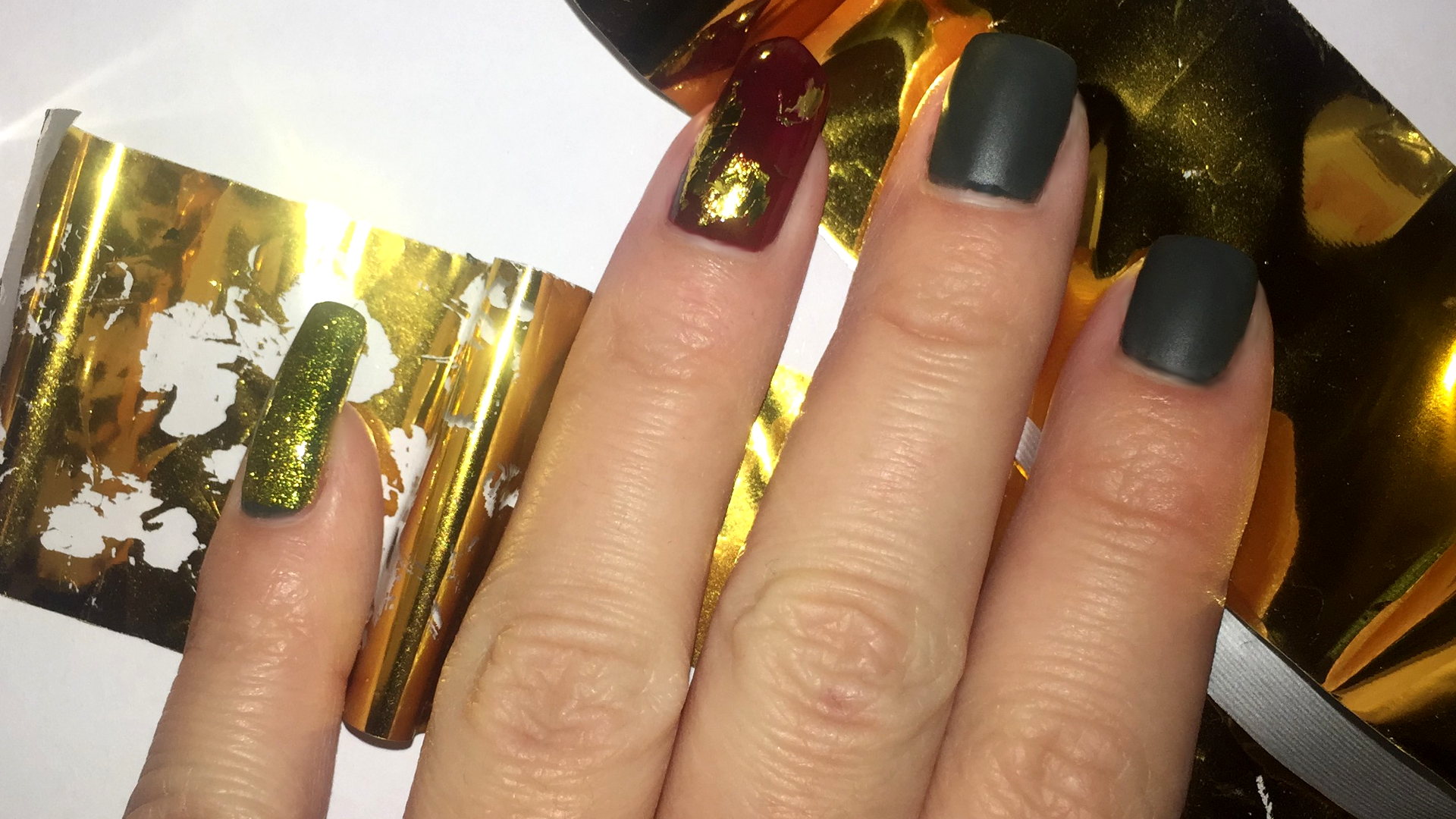 - Step 4: Mit goldener Nailart Foil verzierst du deinen Ringfinger. Die Folie trägst du auf, sobald der Nagellack etwas angetrocknet ist. Er darf weder zu nass noch komplett trocken sein. Den perfekten Moment findest du nach ein paar Mal probieren ganz schnell
