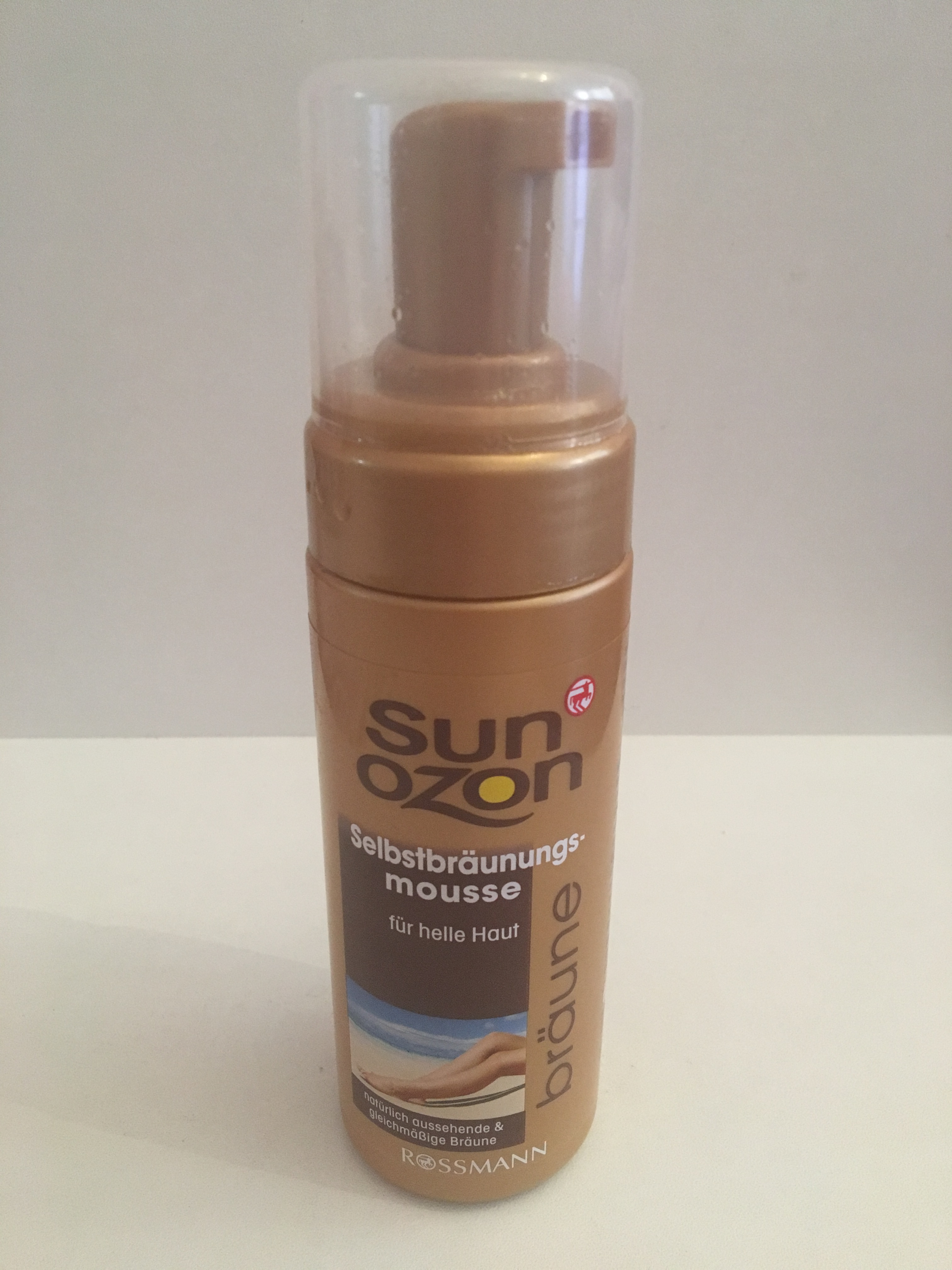 Selbstbräuner und ich…das ist eine lange Geschichte mit vielen Tragödien. Da ich einen eher heller Hauton habe, bin ich eben entweder weiß oder rot. Daher hab ich bereits im Teeniealter meine ersten Versuche mit Selbstbräuner gemacht, die alle gescheitert sind. Entweder fleckig oder zu dunkel und orange. Jetzt hab ich es aber doch wieder gewagt, denn gerade am Sommeranfang möchte man schon kurze Sachen tragen ohne in hellen Shirts gefühlt unsichtbar zu sein. Bei Rossmann habe ich dieses Selbstbräunungsmousse für helle Haut von sun ozon für unter 3€ entdeckt. Und es klappt hervorragend. Das Mousse, das eigentlich eher wie ein Schaum ist, ist viel leichter zu verteilen als Creme oder gar Spray. Und dadurch, dass es für helle Haut ist, passt auch die Farbe super und sieht sehr natürlich aus.
