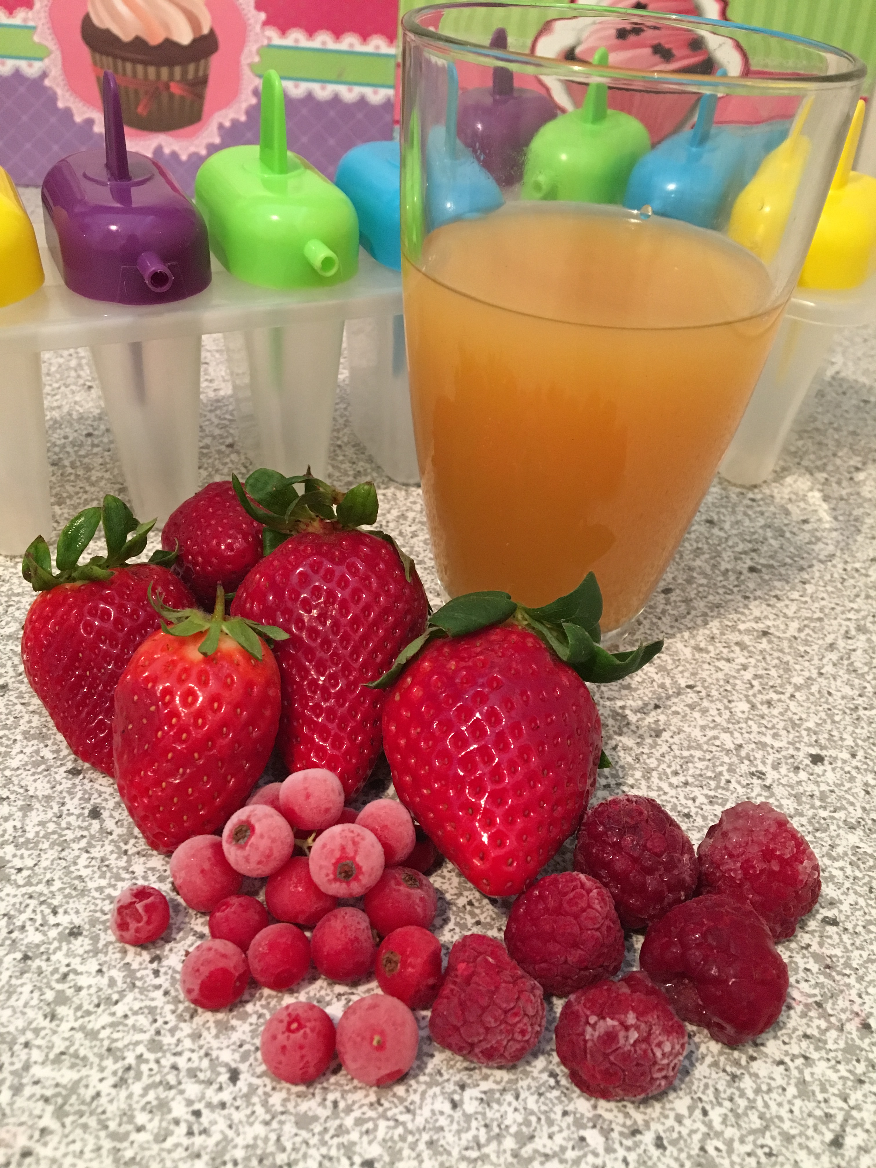 Es gibt ja mittlerweile in vielen Supermärkten veganes Eis. Zum Beispiel die Klassiker Schoko und Vanille auf Sojabasis bei REWE. Mein Favorit sind aber die Sorten von LUVE, also Eis aus Lupinen. Da gibt es auch die zwei Klassiker und zusätzlich noch fruchtiges Erdbeereis und sogar Sckoko+Keks und Karamell+Keks. Dass sie vegan sind macht sie aber leider nicht viel diättauglicher. Noch erfrischender und wesentlich kalorienärmer sind da Sorbet bzw. allgemein Wassereis. Doch auch die sind oft mit viel Zucker und oft fehlt mir da noch etwas. Deshalb mache ich mir mein Eis am Stiel selbst und kann so frische Früchte nach Lust und Laune dazu mischen.