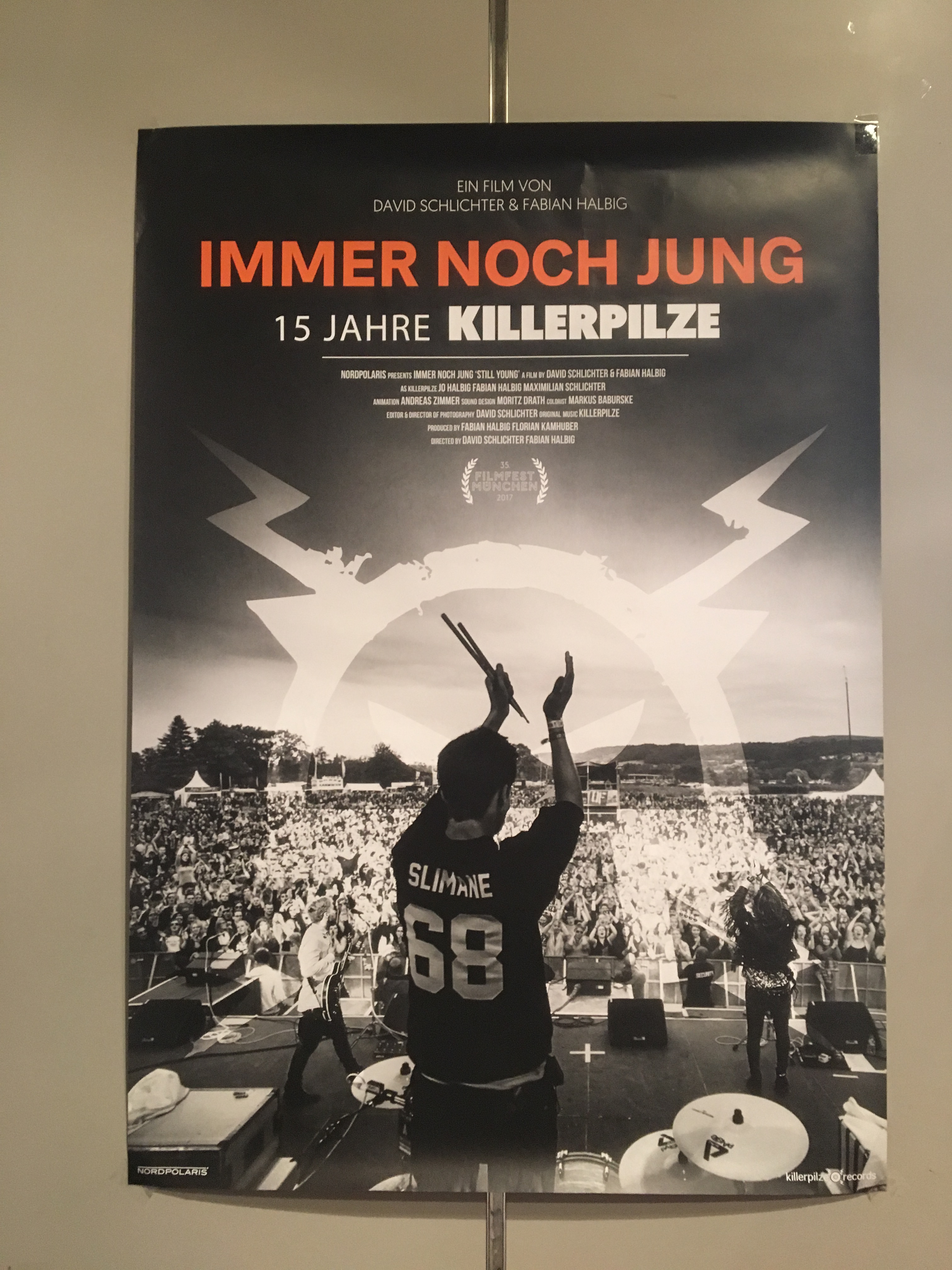 Diese Woche ging es von der Konzertbühne auf die Leinwand. Im Rahmen des Filmfest München haben die Killerpilze ihre erste eigene Banddokumentation vorgestellt und dafür sogar den Publikumspreis gewonnen. Herzlichen Glückwunsch, absolut verdient! Das besondere an dem Film ist, dass dieser nicht von irgendwem produziert wurde, sondern von Fabi und David Schlichter, Mäx‘ Bruder. So ließen es sich die Vier dann natürlich auch nicht nehmen, persönlich vor Ort zu sein und sich den Film zum ersten Mal zusammen mit Publikum anzusehen und deren Reaktionen zu beobachten. Nach der Vorstellung gab es noch eine kurze Fragerunde, bevor du die Möglichkeit hattest, dich selbst mit den Vieren zu unterhalten, ehe es weiter zur Aftershowparty im Cord Club ging und auf die gelungene Premiere angestoßen wurde. Man merkte den Killerpilzen die Dankbarkeit an, denn IMMER NOCH JUNG war ein weiteres Crowdfunding-Projekt der Band. Schon ihr Album High haben sie sich mithilfe ihrer Supporter finanziert und damit das größte Crowdfunding-Projekt im Bereich Musik gestemmt. Wie du siehst: die Community, welche sich selbst als die KP Family bezeichnet, ist bis heute sehr aktiv und steht in allen Zeiten zu den begabten Künstlern.