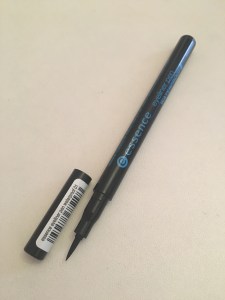 Ohne Lidstrich geht bei mir gar nichts. Seit sehr langer Zeit benutze ich nun schon Eyeliner Pens. Zuletzt hatte ich mir allerdings auch einen Dip Eyeliner von essence gekauft., mit dem ich nach wie vor zufrieden bin. Allerdings bin ich mit den normalen Stiften mit Filzspitze besser geübt und es geht einfach schneller. Deshalb benutze ich mittlerweile wieder hauptsächlich den waterproof eyeliner pen von essence. Auch andere Marken haben ähnlich gute Varianten davon, ich bevorzuge aber diesen hier. Der Grund ist primär der Preis, denn mit 2,75€ ist er einer der günstigsten. Außerdem ist es ein großer Vorteil, dass der Eyeliner wasserfest ist, da meine Augen recht häufig tränen. Besonders toll ist auch die lange, dünne Filzspitze, mit der der wirklich Auftrag einfach und präzise ist. Die Spitze franst nicht aus und auch zum Ende hin dringt noch Produkt bis dorthin, wenn man ein bisschen schüttelt und „pendelt“.