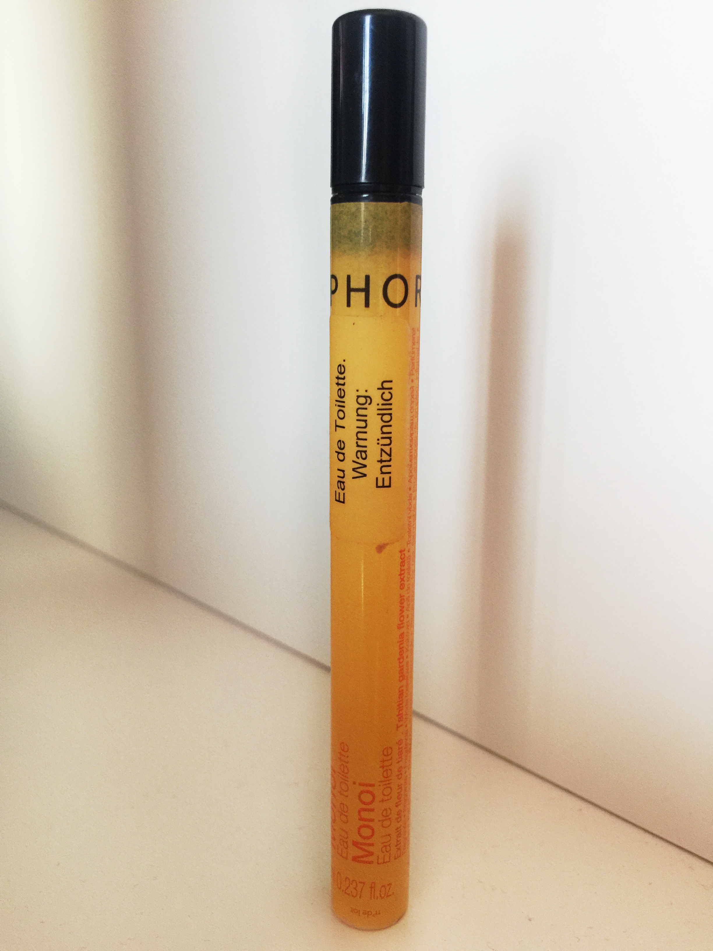 Und noch ein Sephora Produkt. Ja, die letzten Wochen habe ich dort quasi gelebt. Für 4,49€ habe ich bei Sephora diese süßen 7ml Sprayparfums entdeckt. Doch diese unwiderstehlichen Düfte gehen leider viel zu schnell leer. Ich habe Monoi getestet und der hält auf der Haut recht lange, so dass es nicht unbedingt nötig ist, viel mehr Inhalt dabei zu haben und ständig zu sprühen. Der Mini-Flacon ist aber total praktisch, wenn es ums Reisen geht. Denn wer schleppt unterwegs schon gerne große Parfums mit sich rum? Um also auch on the road gut zu duften und für den Ernstfall gewappnet zu sein, sind die Sephora Parfums nahezu perfekt. Es gibt noch 7 weitere Duftrichtungen, doch bei Sephora in München verkaufen sich so langsam alle aus. Online sind sie meisten jedoch noch verfügbar. Bestelle also unbedingt online vor und lasse dir den Duft in die Filiale liefern, dann bist du auf der sicheren Seite. Ich möchte als nächstes unbedingt Peony ausprobieren. Hast auch du schon deinen neuen Lieblingsduft entdeckt?