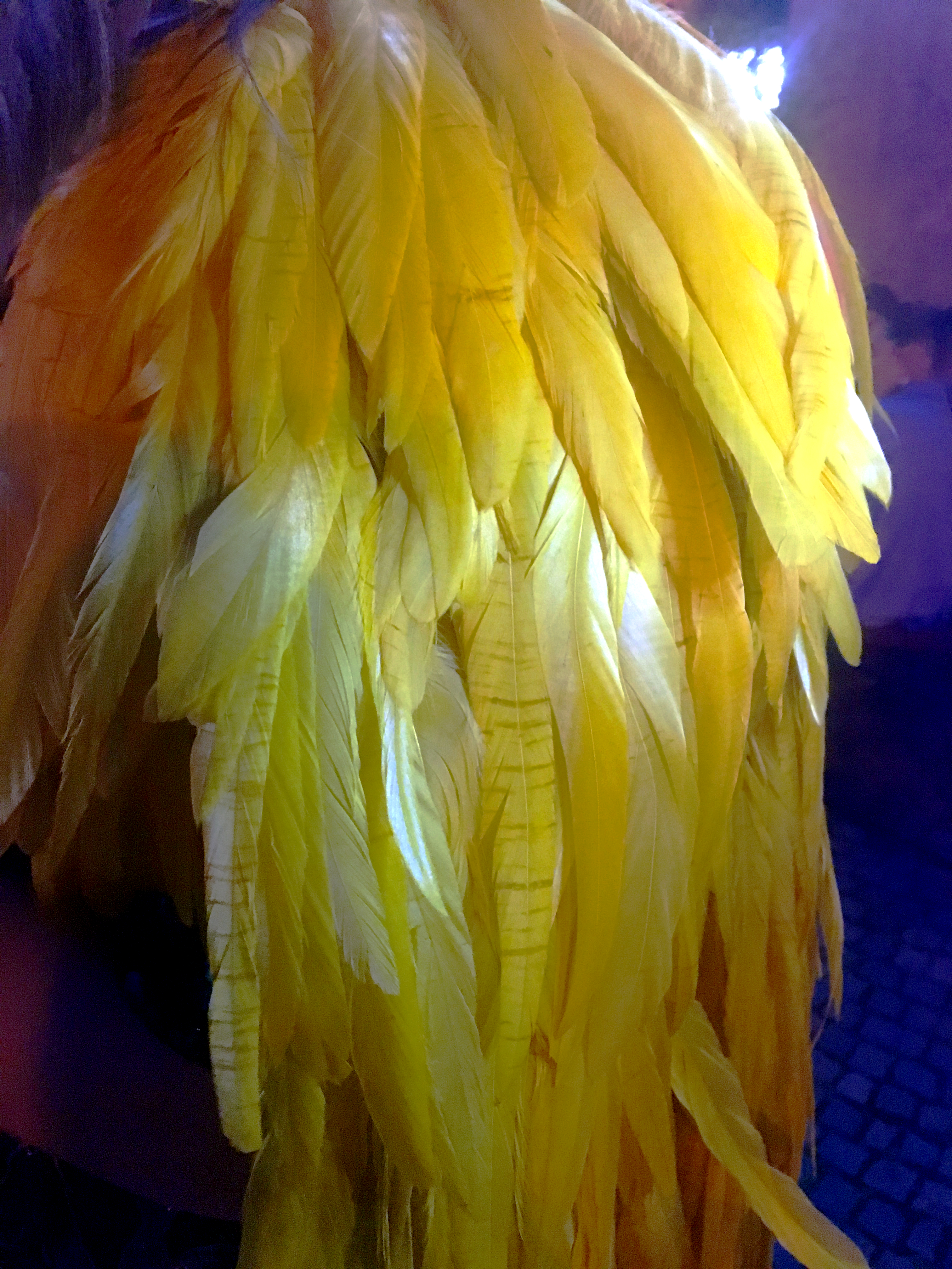 Neonfedern und Paillettenshirt – Trends in Kombi