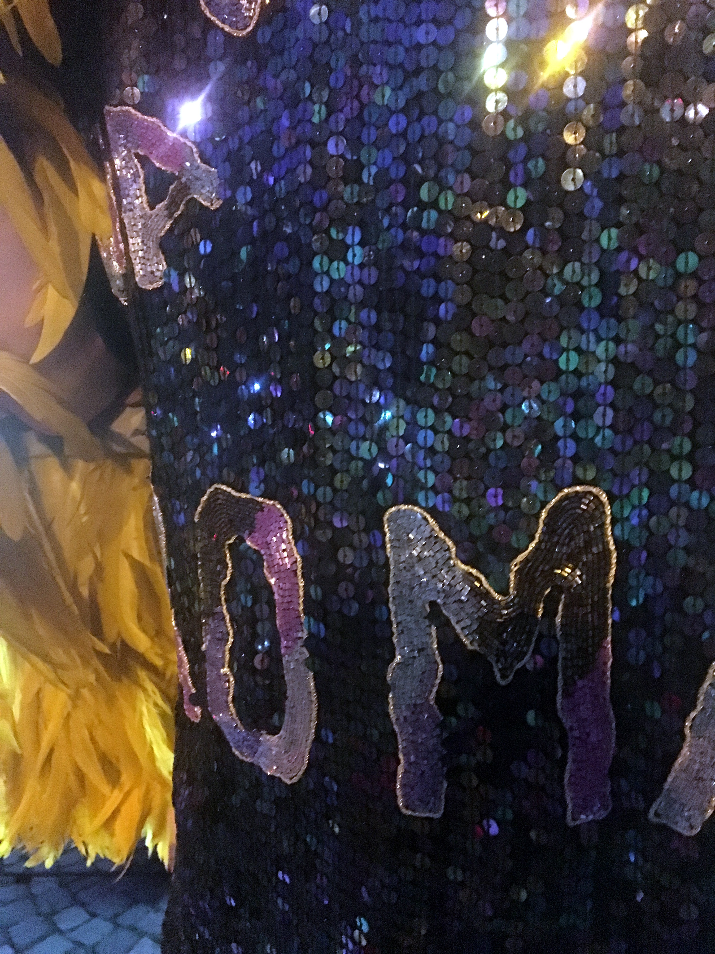 Er ist der Meister der Trendkombinationen. Riccardo liebt es, mit Mode zu spielen und das macht sein Andy Warhol Look ganz klar deutlich. Wohin schaue ich zuerst? Vermutlich ist es das quietschgelbe Federcape, das alleine durch die Farbe sofort ins Auge springt. Federn waren vor nicht allzu langer Zeit erst wieder ein absolutes Trendthema. Riccardo verlängert die Phase mit seinem Teil aus der „Blushes“ Spring / Summer 2017 Kollektion von Dawid Tomaszewski. Doch ein Trend ist nicht genug. Pailetten müssen her. An sich ein Thema, was auffällt, doch in Kombination wirkt das Shirt alles andere als aufdringlich, sondern unterstützt den exzentrischen Look angenehm. Sieht man weiter hinab, wird der Style mehr Street. Riccardo hat sich zu einer schwarzen Skinny Jeans und schwarzen Schuhen entschieden, die den Look perfekt abrunden.