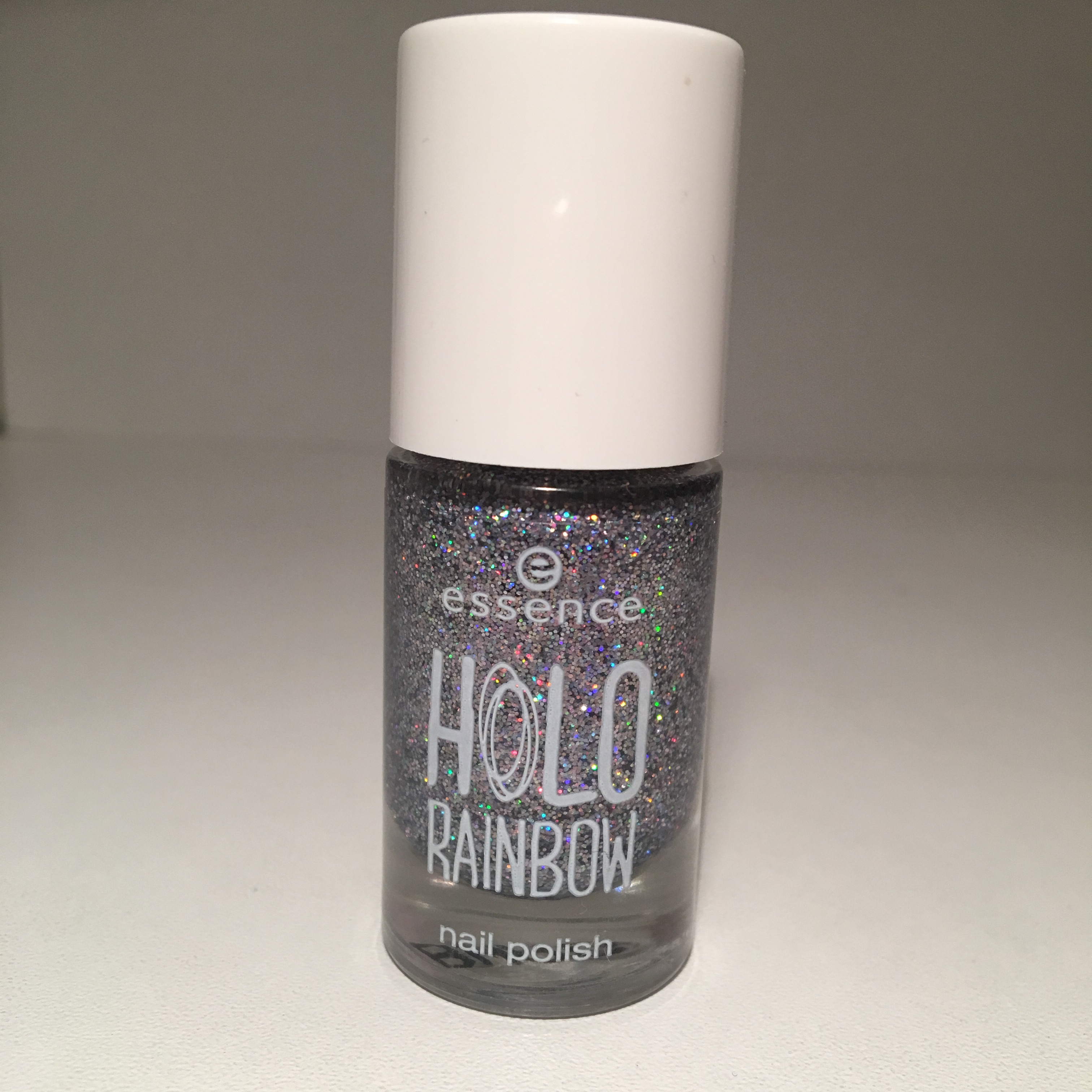 essence hat das Nagellack Sortiment sehr erweitert. Auch um die glitzernden Holo Rainbow Lacke für 2,75€. Diese gibt es in verschiedenen Farben von blau über grün bis pink. Hier ist es so, dass nicht die Glitzerpartikel die verschiedenen Farben haben, wie es zum Beispiel beim pinken Sparked von wet’n’wild der Fall ist, sondern der Lack an sich. Es ist also nicht nur ein Top Coat. Bei den essence Holo Rainbows reflektieren die Glitzerpartikel wie der Name schon sagt holoartig in allen Farben. Mein Liebling ist momentan 01 hello holo, der eine farblose Nagellackfarbe hat. Er enthält so viele Glitzerpartikel, dass wirklich fast der ganze Nagel damit bedeckt ist.