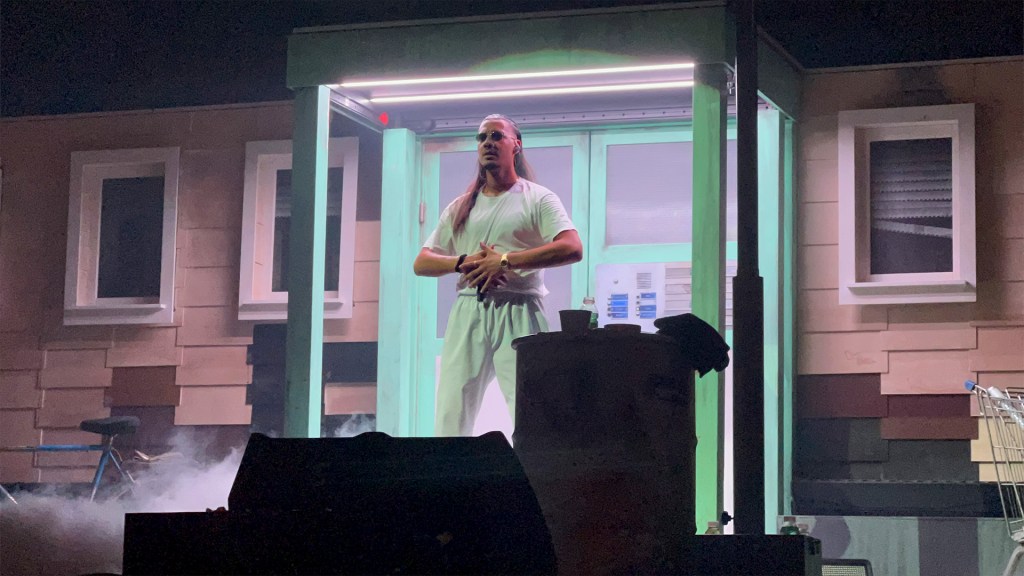 Wir hatten keine große Vorstellung von dem, was uns auf dem Apache Konzert in Mannheim erwarten wird. Immerhin ist das seine erste Tour. Klar, wir waren uns sicher, dass es sehr viel Spaß machen wird, aber dass es eine solch gute Produktion werden wird, damit hat uns der Deutschrapper definitiv überrascht. Und dabei kennt man ihn doch für seine großen Anspruch an sich selbst. Als sich der rote Vorhang geöffnet hat, hat sich die Kulisse aufgetan: eine Nachbildung seines Blocks in der »wunderschönen Gartenstadt« samt Eingangsbereich, dem Dach, auf dem er im Famous Video performt hat, einem Spielplatz davor und der Nachbarsblöcke. Apaches DJ (und laut eigenen Angaben auf Instagram Zauberkünstler 😃) Pretty Flippo steht auch auf der Bühne, als König des Rutschenhauses. Apache hingegen performt vor und sogar auf seinem Block. Wahnsinn! Diese recht persönliche Kulisse wurde dann noch ergänzt um kinoartige Einspieler auf der Leinwand, die Einblicke in das Leben & die Entwicklung von Apache 207 gegeben haben und nahtlos in die Bühnenshow übergegangen sind. So war da zum Beispiel eine Szene mit seinem Bruder: Die beiden sitzen gemeinsam im Auto, sprechen von ihren Zielen & Träumen, fahren zu ihrem Block und plötzlich geht die Szene auf der Bühne weiter. Da stehen sie, die beiden Yaman Brüder. Ein episches Bild, auf das nur Fame folgen kann.